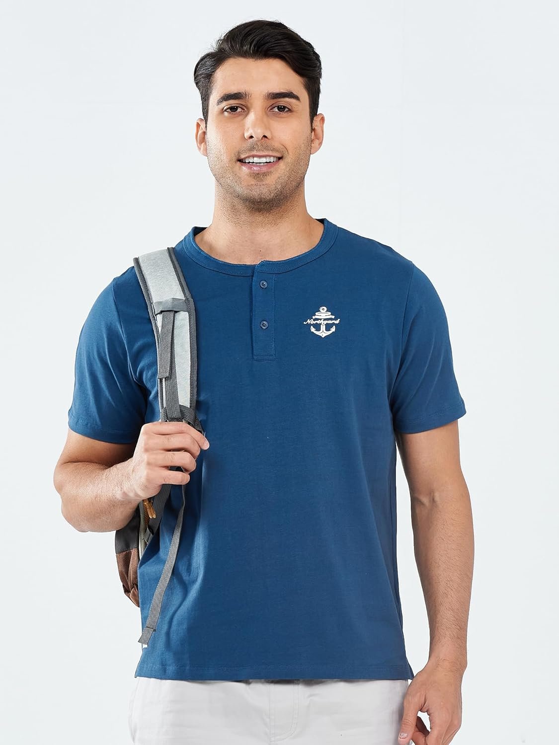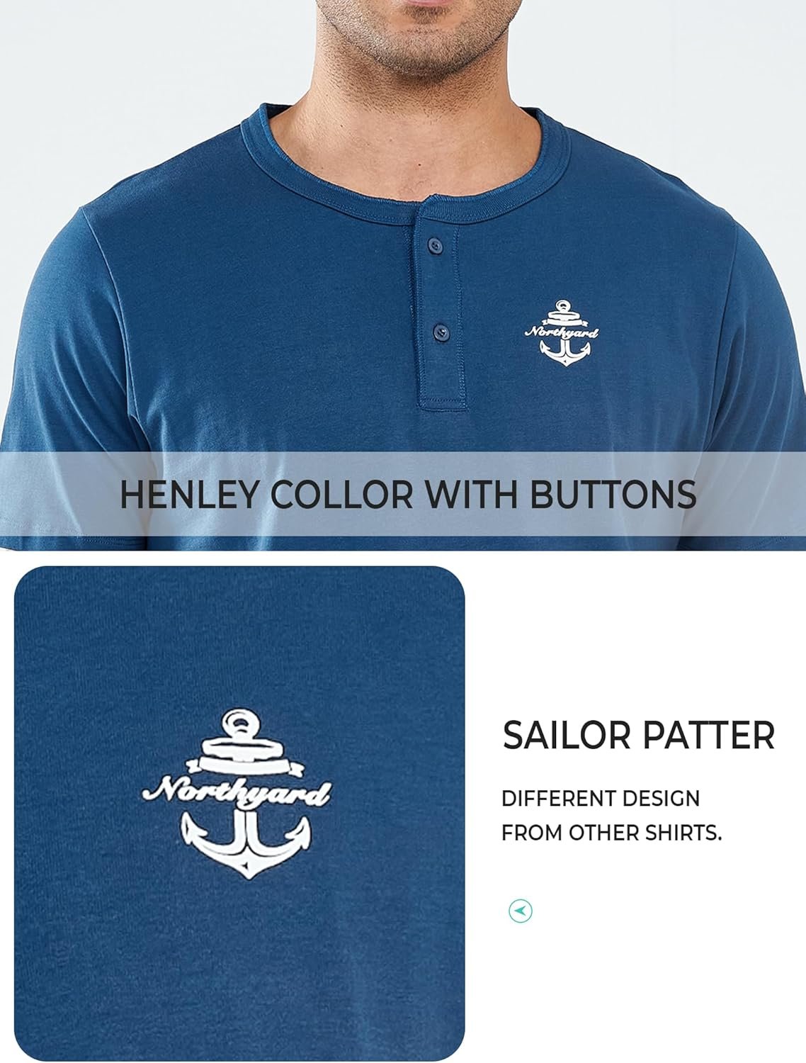 Write an article in French about: NORTHYARD Men’s Henley Shirts Casual Short Sleeve Heavy Cott… In English