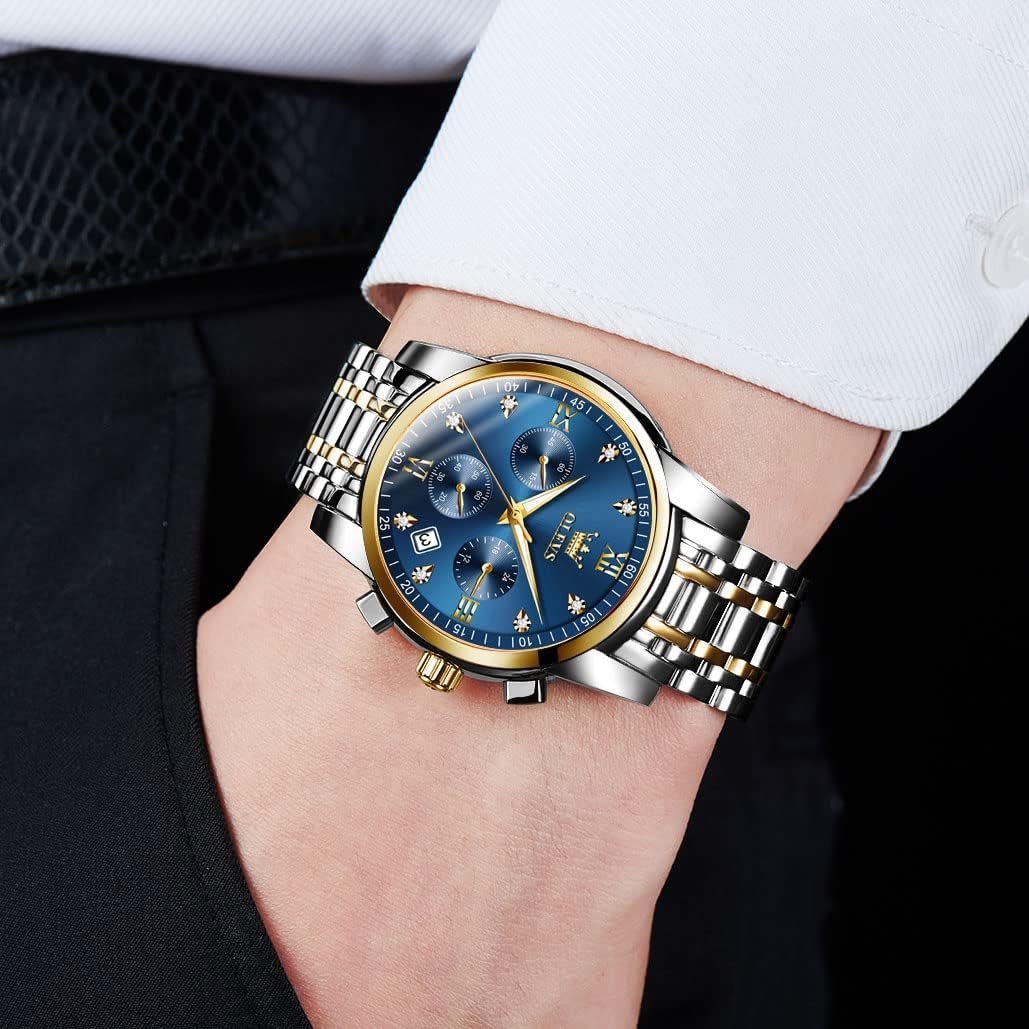 Write an article in French about: OLEVS Men’s Stainless Steel Chronograph Watch, Big Face Gold… In English
