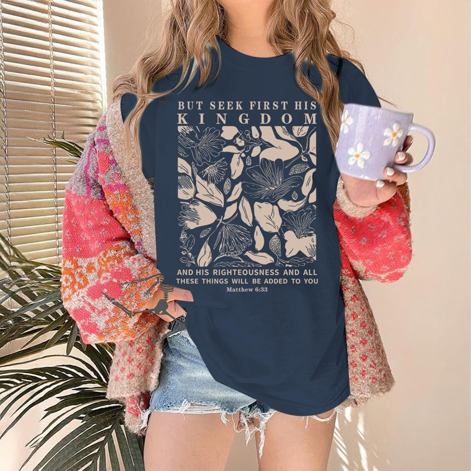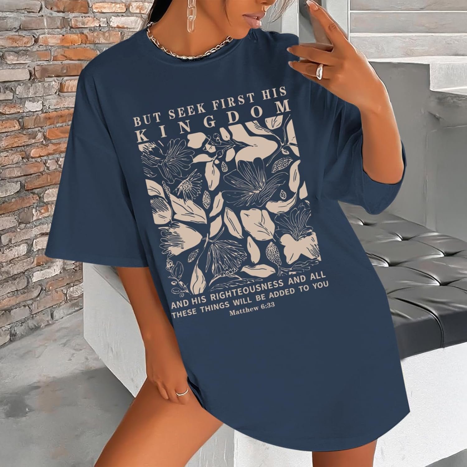 Write an article in French about: Oversized Christian Faith Shirts for Women Jesus Bible Verse… In English