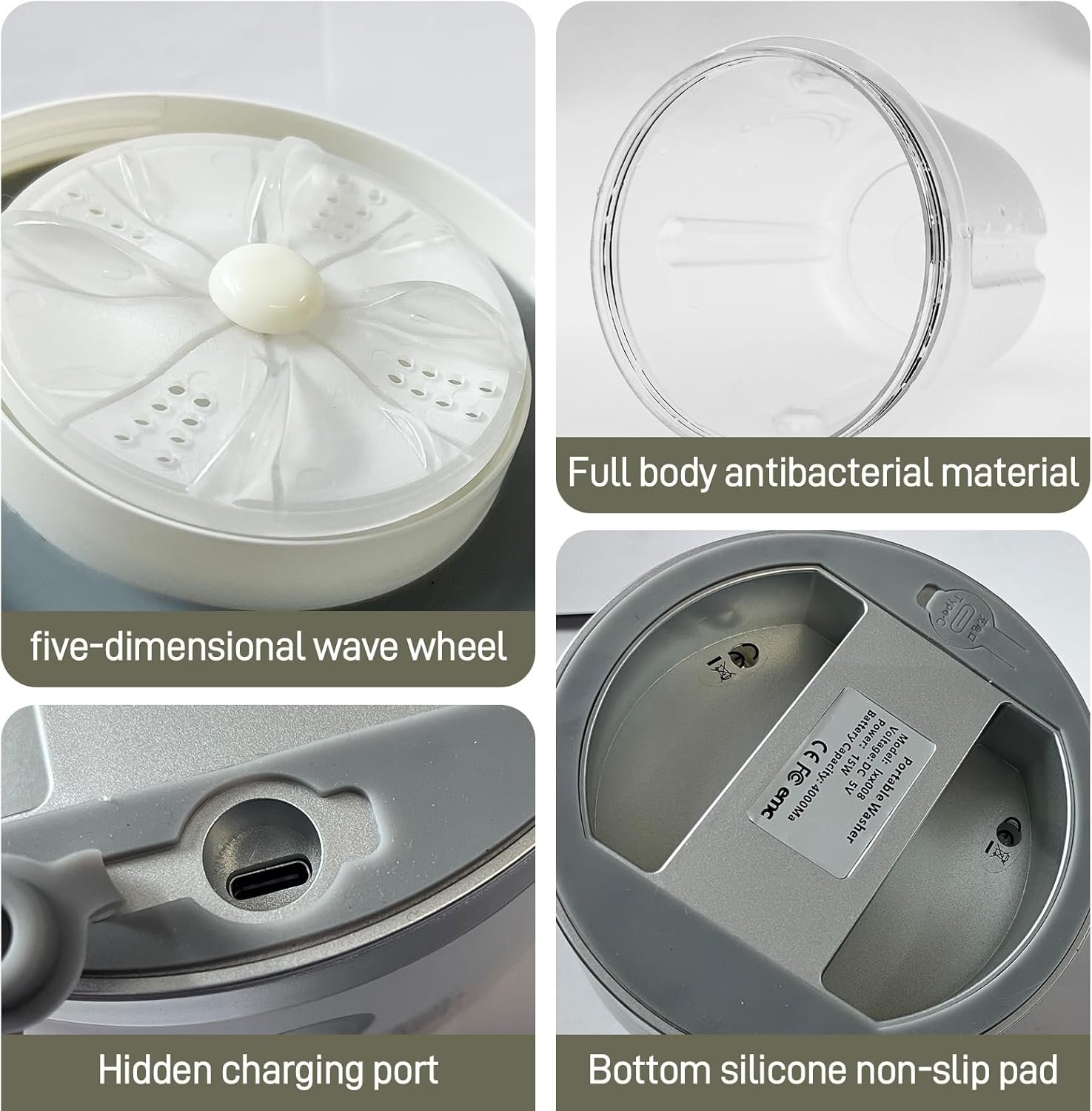 【Portable Washing Machine】The body weighs only 1.8 lbs, compact and easy to carry, ideal for your apartment, dorm, hotel, travel or camping! Our portable washing machine is made of TPE and food-grade silicone material, protecting the health of you and your family! It’s also an ideal gift choice for you! 【Please note】Portable washer does not have a dehydration basket.