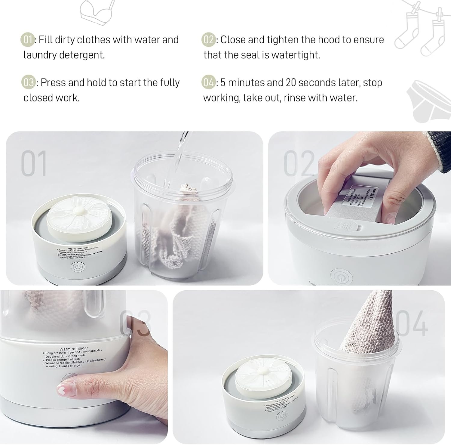 Portable Mini Washing Machine | Compact Deep Cleans Underwear, Baby Clothes, Small Laundry | Lightweight for Apartment, Dorm, Hotel, Travel & Camping | Quiet Energy-Efficient (White)