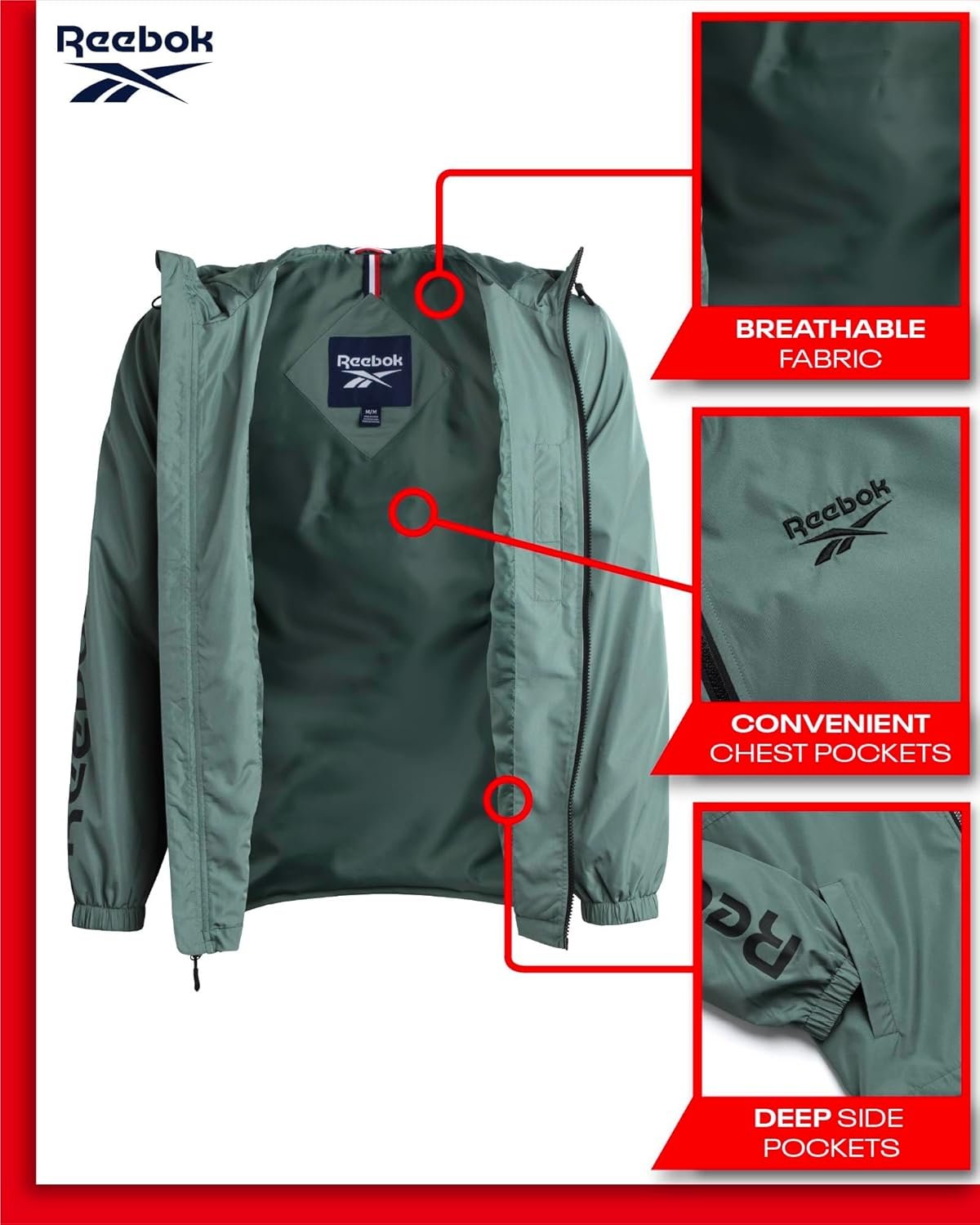 Write an article in French about: Reebok Men’s Jacket – Full Zip Polar Fleece Lined Windbreake… In English