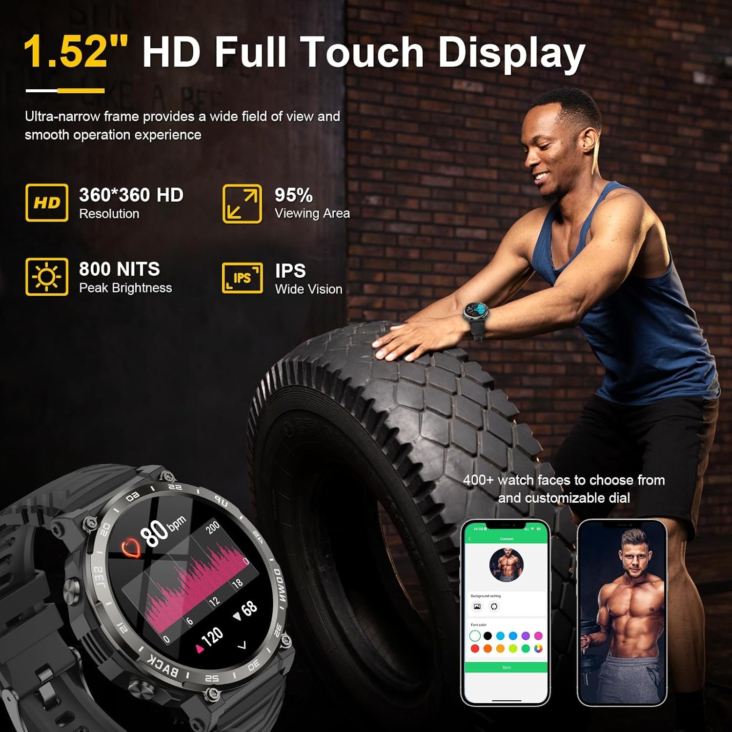 Smart Watches for Men-Bluetooth Call, 1.52″ Military Smart W…