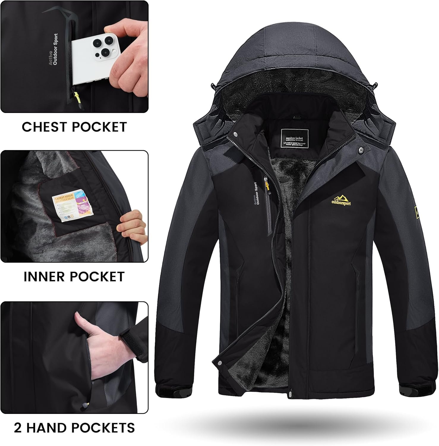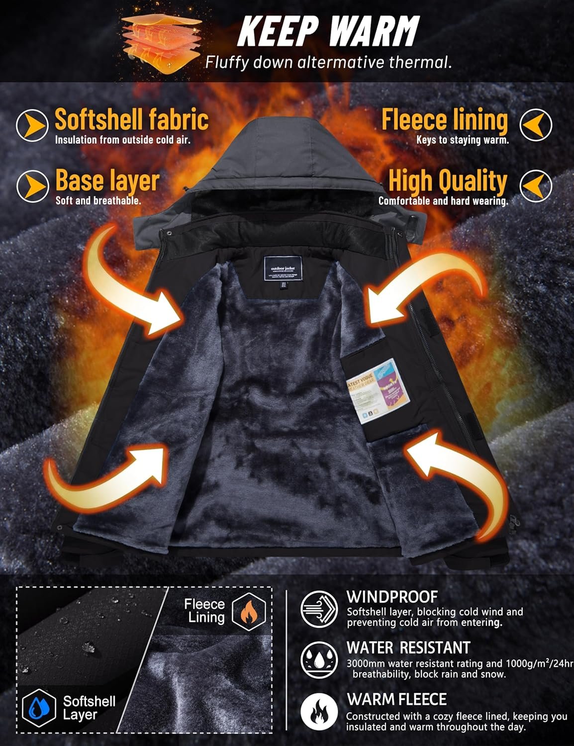 Write an article in French about: TACVASEN Winter Jacket Men’s Water-Resistant Fleece Jacket S… In English