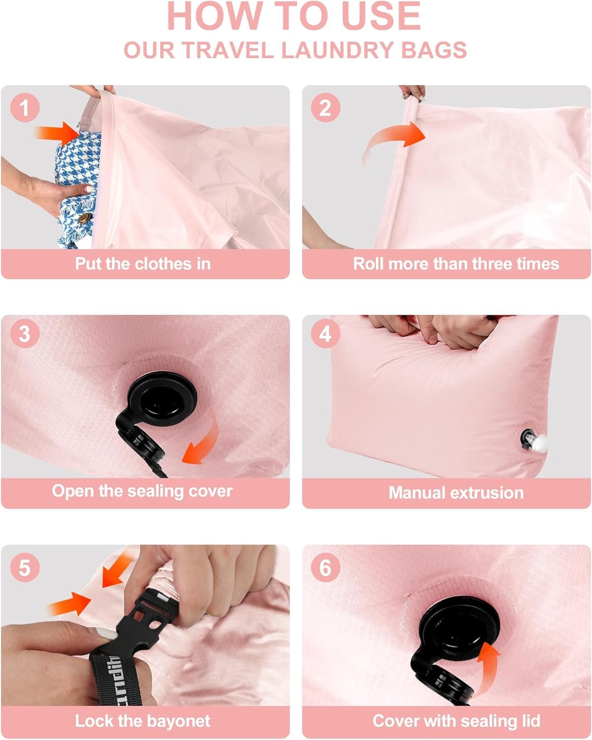 Space-Saving Compression: Save up to 50% space with this pump-free Laundry Bag. Press to release air easily, and enjoy its lightweight 4.9 oz design. Includes a roll-top buckle, sturdy handle, and one-way valve for effortless compression and portability.