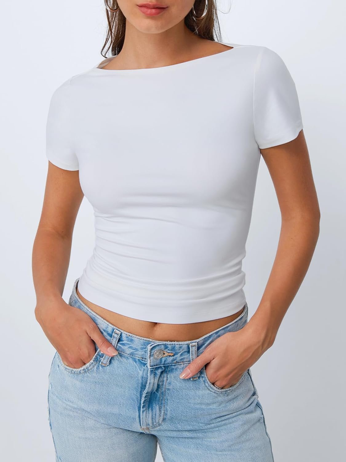 Write an article in French about: Trendy Queen Womens Boat Neck Tops Short Sleeve T-Shirts Goi… In English