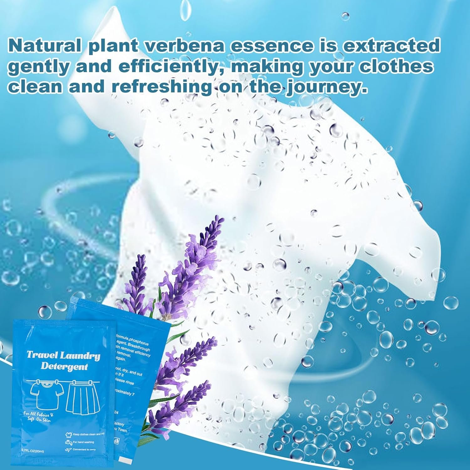 Twoworld Travel Size Liquid Laundry Detergent 0.7floz/20ml per Bag, Verbena Scent, 50 Pack, Suitable for All Fabrics, Hand & Machine Wash