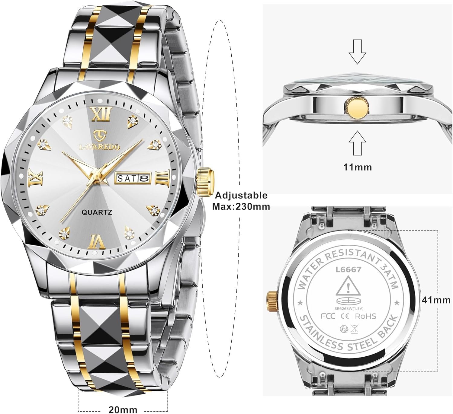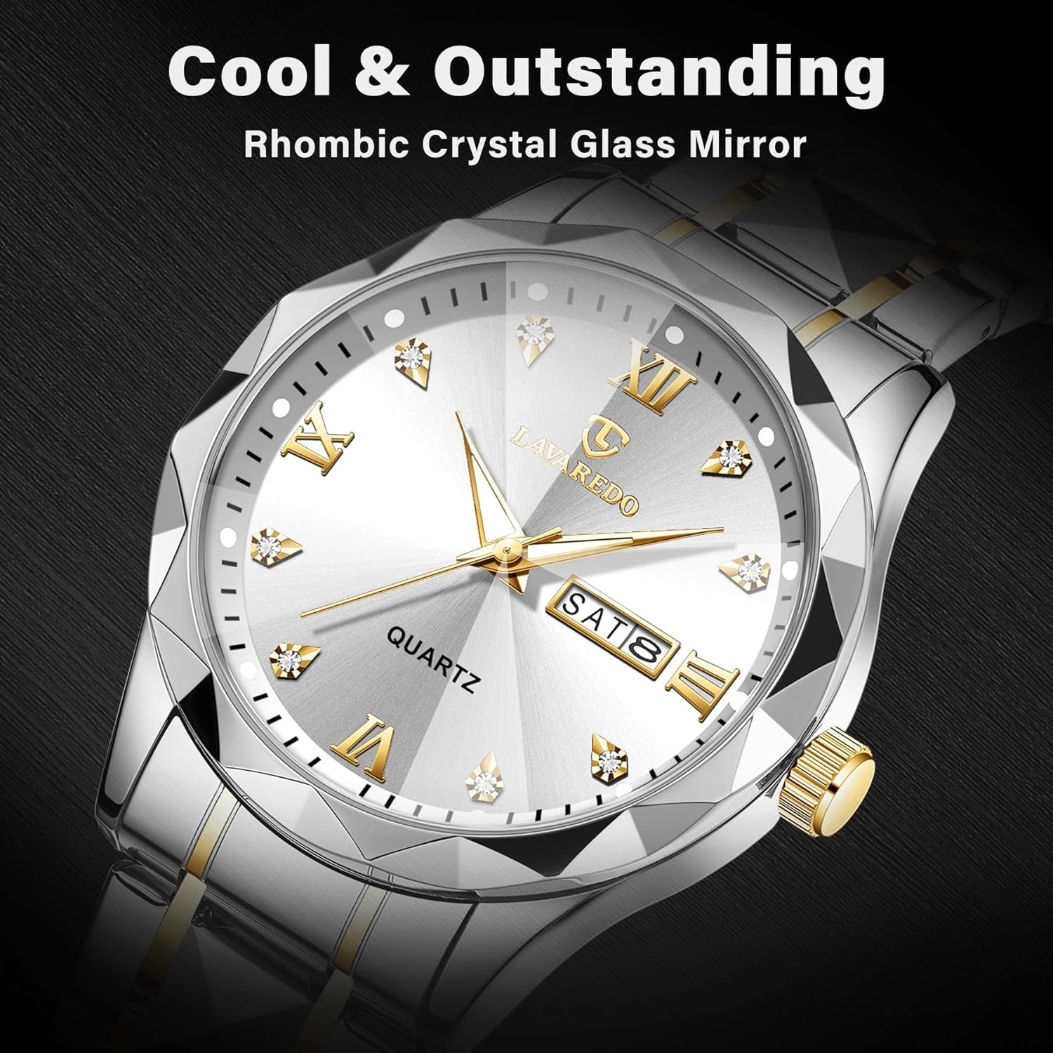 Write an article in French about: Watches for Men Diamond Business Dress Analog Quartz Mens Wa… In English