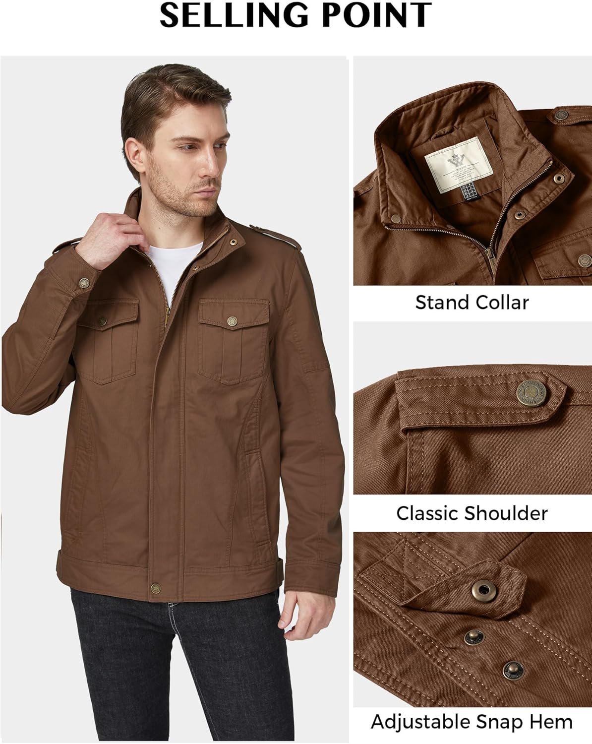 WenVen Men’s Casual Washed Cotton Military Jacket