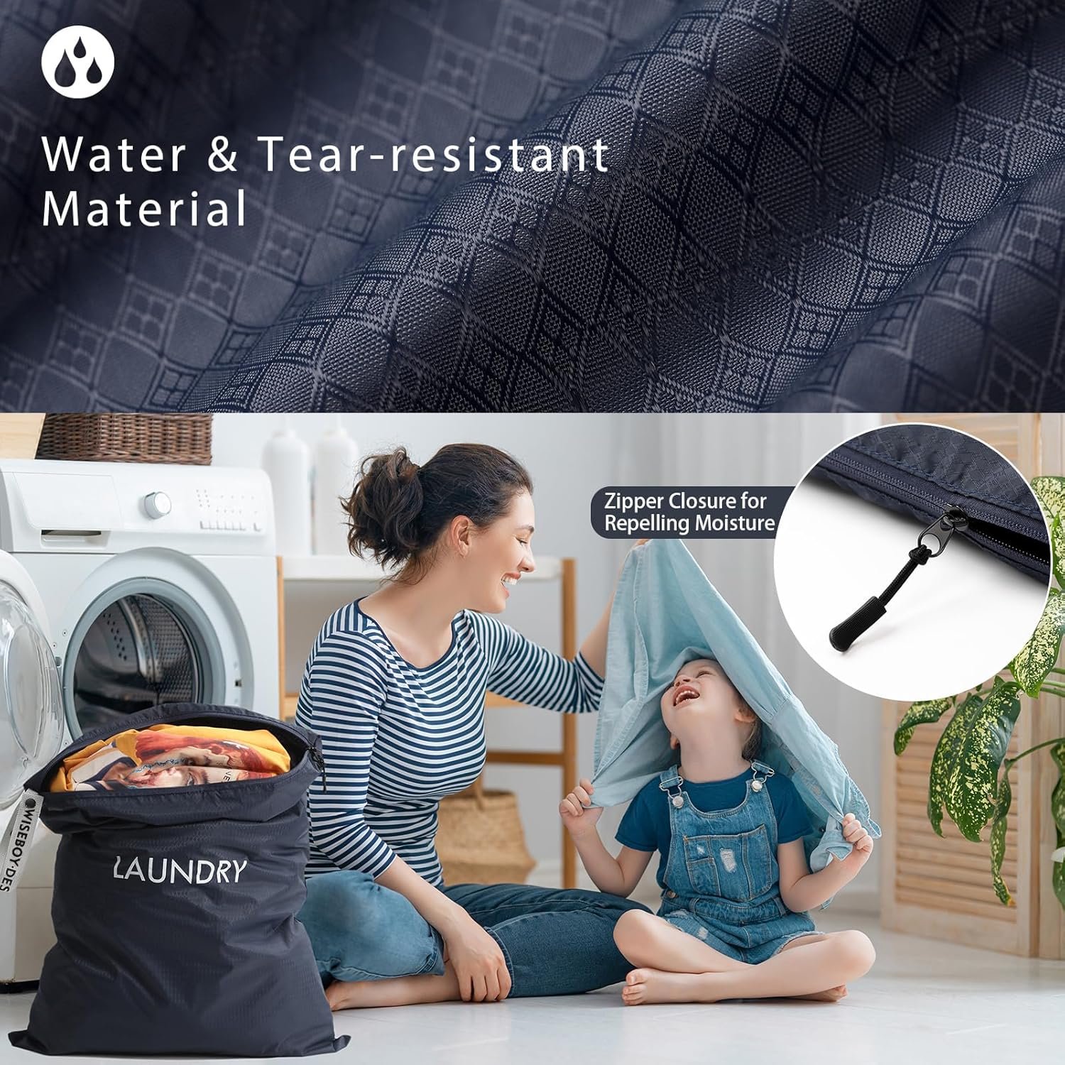 WiseBoy 2 Pack Laundry Bags, Washable Wet Dry Bag, Travel Laundry Bag Dirty Clothes Organizer, Swimming Yoga Bathing Suit Workout Wet Dry Bag – Navy Blue
