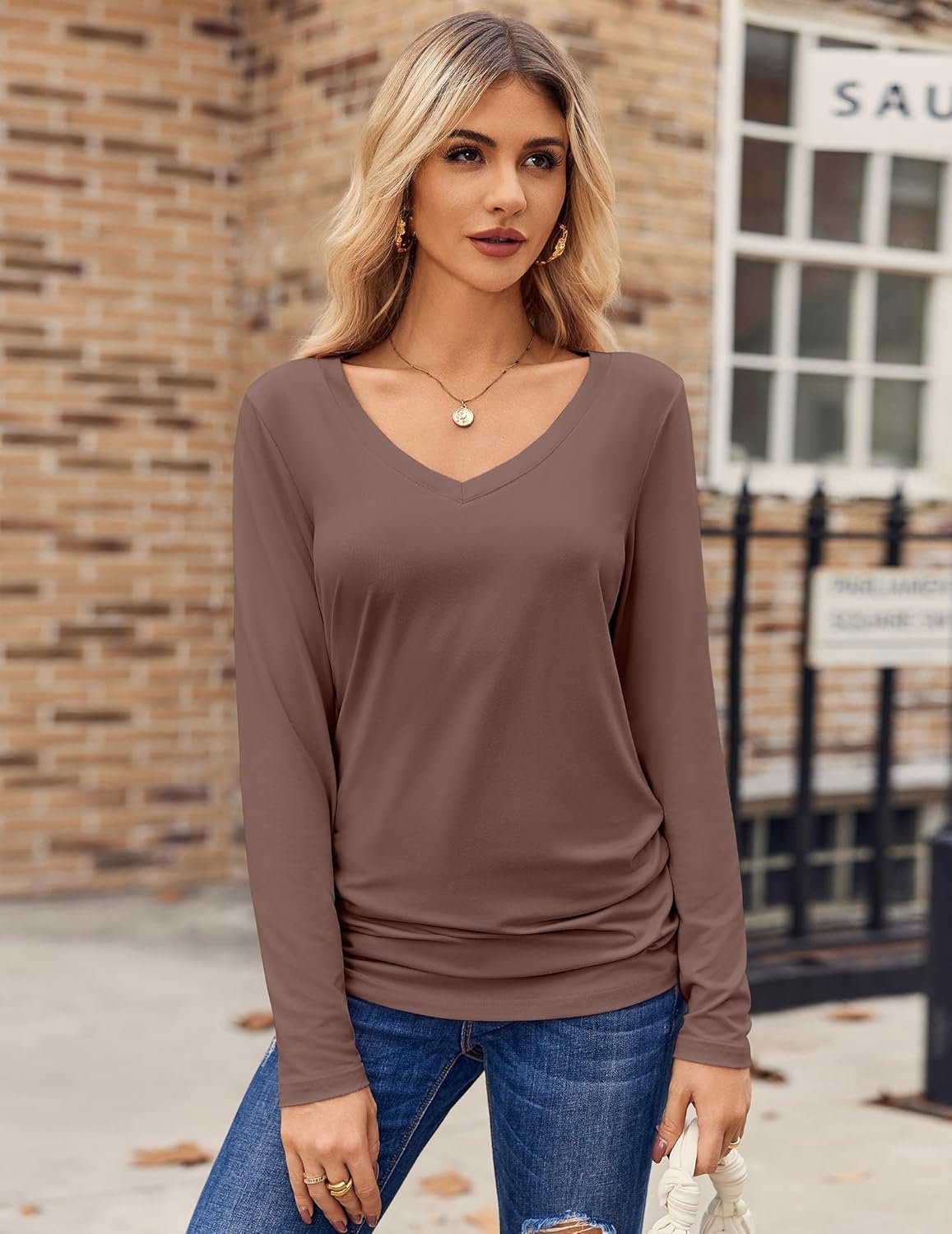 Zeagoo Womens T Shirts Long Sleeve V Neck Basic Tee Soft Cas…